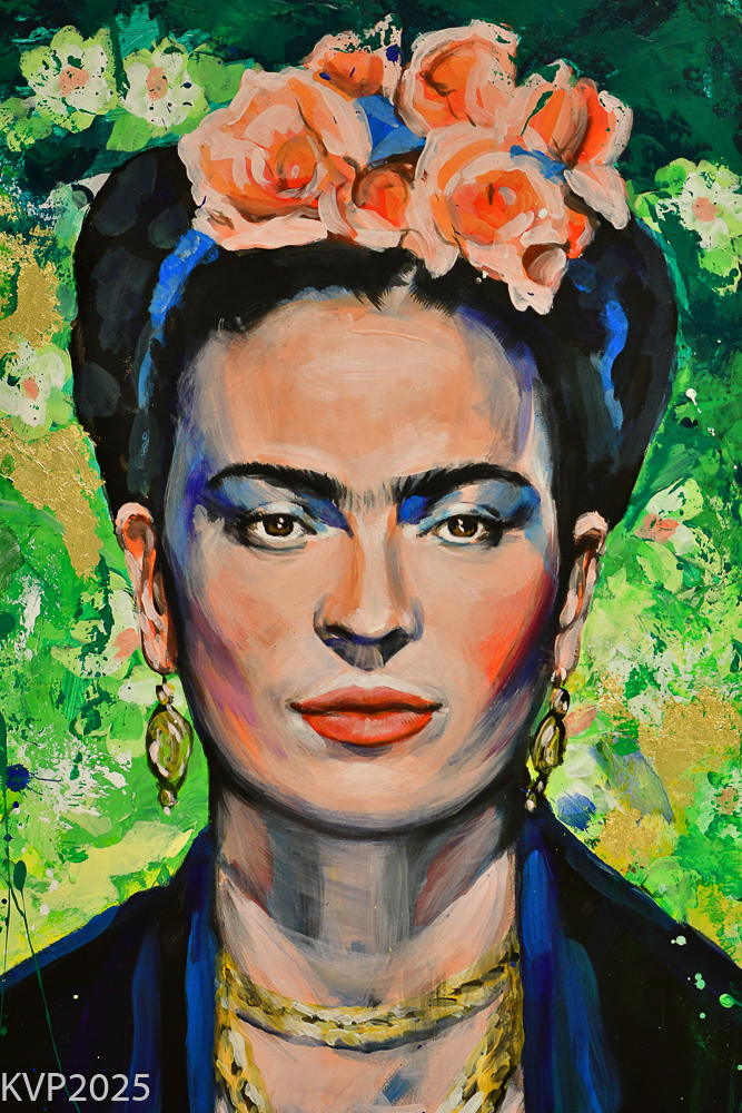 Neben Claudia Rabet und Friederike Kannenberg gibt es noch eine weitere starke Frau zu bewundern: Frieda Kahlo hat es gleich auf zwei Leinwände dieser Ausstellung geschafft.